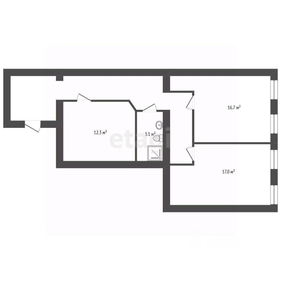 3 отдельные комнаты: 16,5 м², 16,3 м², 12,3 м²