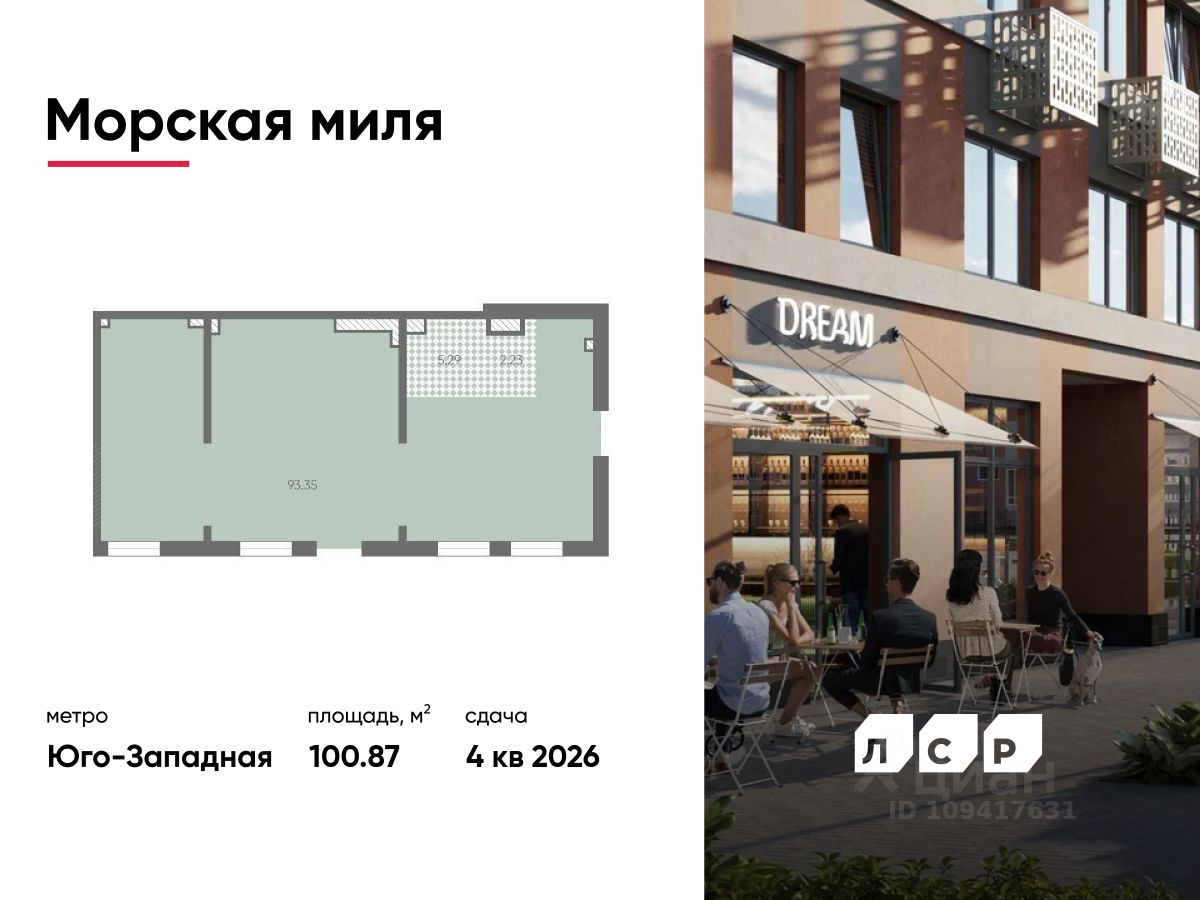Продается помещение свободного назначения 100.87 кв. м в жилом комплексе комфорт-класса "Морская миля" в Красносельском районе. В шаговой доступности от станции метро "Юго-Западная"