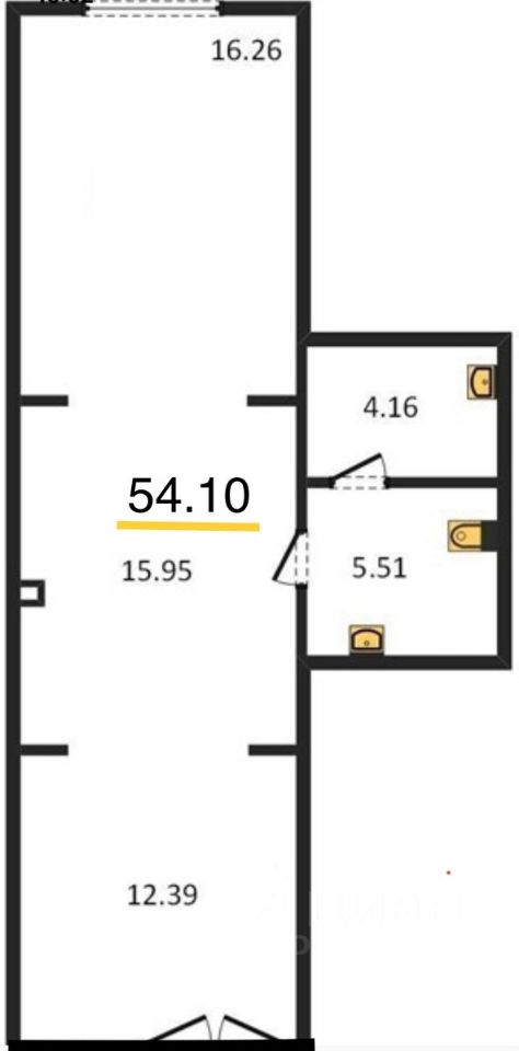 Общая площадь помещения составляет 54 квадратных метра. Помещение оснащено всеми необходимыми коммуникациями: есть электроснабжение, теплоснабжение, водоснабжение, канализация.