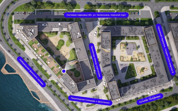 Проект находится в шаговой доступности от проектируемой станции метро "Морской фасад" и набережной Финского залива, в зоне активного автомобильного и пешеходного трафика. Удобная транспортная доступность: 5 минут пешком до проектируемой станции метро "Морской фасад", 10 минут на машине до ЗСД, 20 минут до "Невского проспекта".
