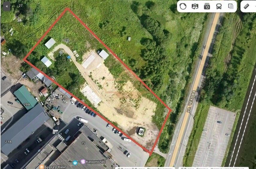 Участок расположен в районе пересечения ул. Чехова и Пушкинского шоссе,