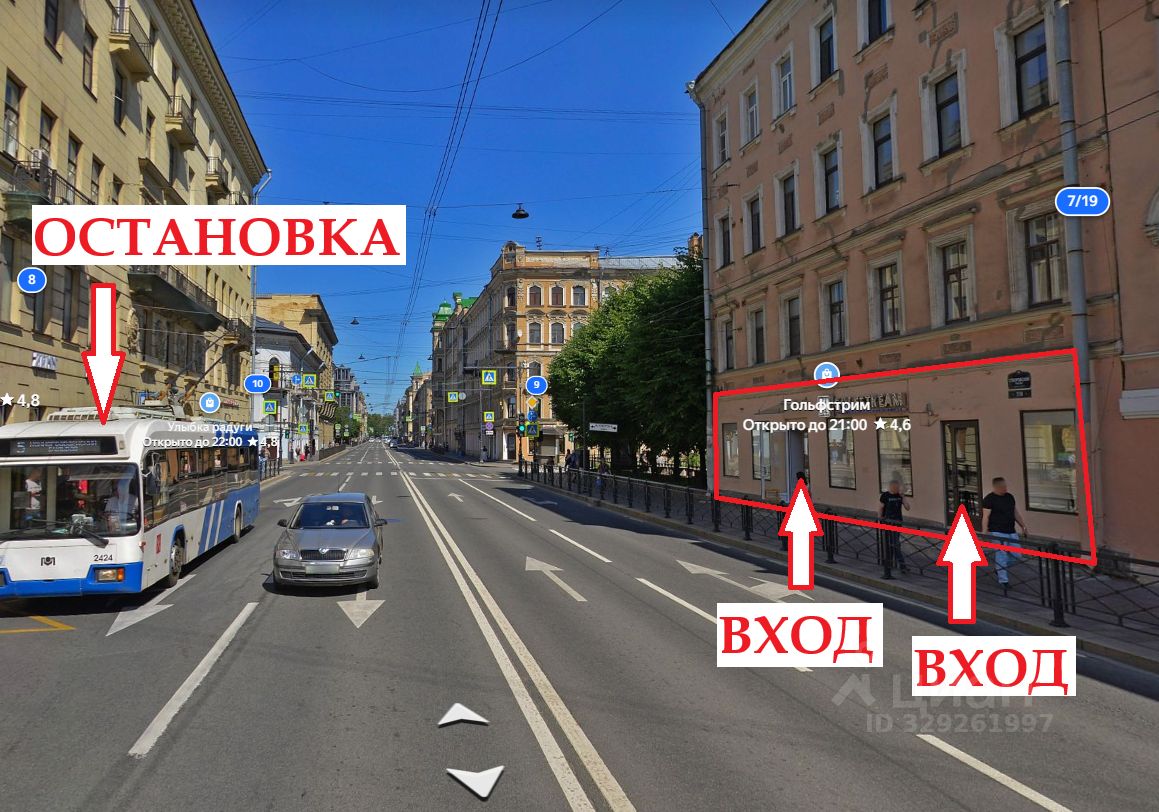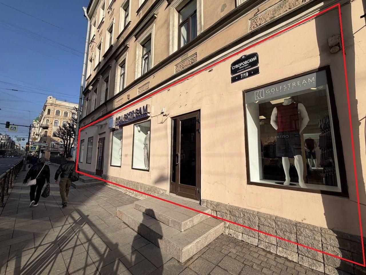 Суворовский проспект - это одна из самых загруженных магистралей Центрального района. Ежедневный автомобильный трафик здесь исчисляется десятками тысяч машин. Рядом - Московский вокзал, который ежедневно обслуживает тысячи пассажиров. Развитая жилая застройка вокруг - дом окружен многоквартирными домами с высокой плотностью населения. Это сложившаяся, живая локация с высокой деловой и социальной активностью. Напротив помещения остановка общественного транспорта.