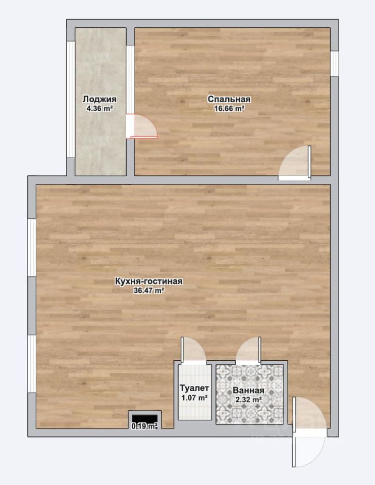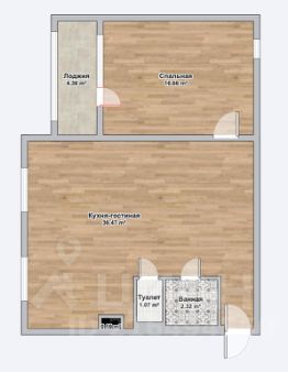 • спальная комната площадью 16,6 кв.м с лоджией 4,3 кв.м и вторым окном