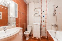 - Комфорт для всей семьи. Утром никто не ждёт в очереди — в вашем распоряжении два раздельных санузла с просторной белоснежной Испанской ванной "Roca" и душевой кабиной с Финской сауной (стекло), есть бойлер на 100 л. Только Немецкая и Испанская сантехника есть стиральная машина с вертикальной загрузкой "Bosch".