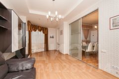 - Идеальная спальня. Здесь вас ждёт не просто комната для сна, укомплектованная дорогим матрасом 160*200*23 см, а личное пространство с продуманной системой хранения — вместительная гардеробная с двумя огромными зеркальными раздвижными дверями Mr.Doors и утеплённая лоджия, готовая к круглогодичному использованию (6 м2).