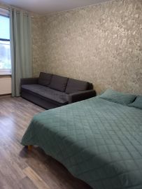 В квартире вместительная гардеробная, просторная прихожая, совмещенный санузел, кухня 10.5м и комната 16.5м и балкон 4м. А также в цокольном этаже находится индивидуальная кладовая для хранения вещей.