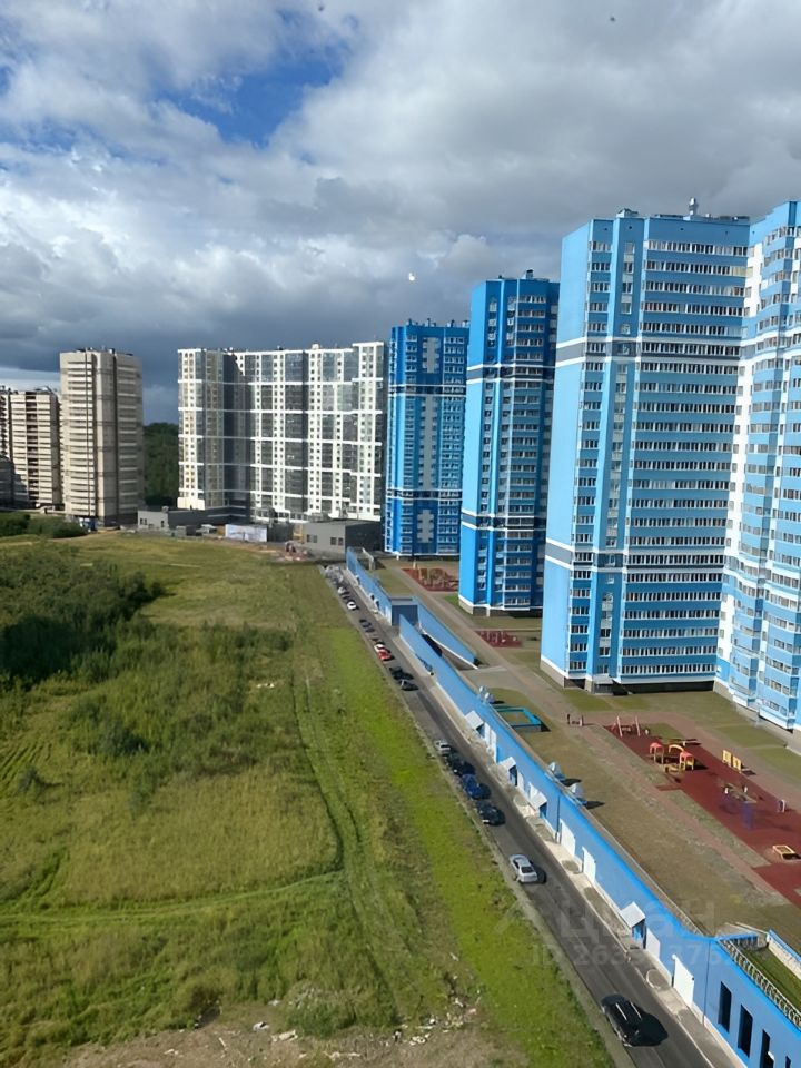 вблизи Синема Мираж, ТРК Гранд Каньон. НА фото настоящий вид из окон, справа ЖК Шуваловский дуэт(голубые дома), слева вдалеке ЖК Континенты. Недалеко крытый каток, фитнесс клубы Сейсмоустойчивость дома -класс 7.