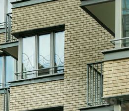 Современный дом с плоским фасадом из клинкерной плитки, правильные геометрические формы, ламели и золотистые террасы придают архитектурную легкость. Угловое витражное остекление и стильная 3-уровневая подсветка арт-объектов образуют выразительный экстерьер. Здание поднимается ступенями с 3 до 9 этажей, формируя приватную территорию с зонами для отдыха, спорта и работы на свежем воздухе.