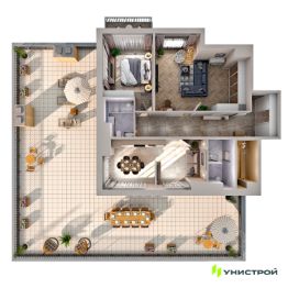 Проект предлагает разнообразие планировок: студии, 1-3-комнатные квартиры, евроформаты. Также есть коллекционные квартиры с мастер-спальнями с ванными и гардеробными, и форматы с саунами. Угловое витражное остекление наполняет квартиры светом. Квартиры с террасами — идеальный выбор для занятий спортом и встреч с друзьями. На последних этажах расположены пентхаусы.