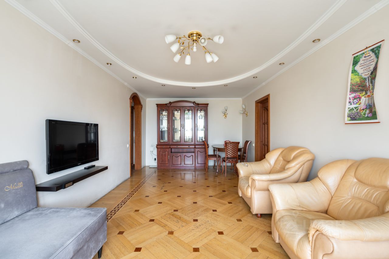 В квартире: Две отдельные спальни, большая гостиная( можно сделать изолированную комнату), просторная кухня с выходом на балкон, 2 санузла.Входная и межкомнатные двери сделаны из массива дуба, на полу - паркет. В одной из комнат оборудована гардеробная.