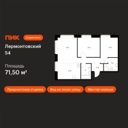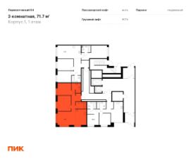 Продаётся 2-комн. квартира площадью 71,5 кв.м на 1 этаже 9 этажного дома (Корпус 1, Секция 3) проекта ПИК Лермонтовский 54. Светлый просторный подъезд на уровне земли, функциональная планировка, большие окна, предчистовая отделка.