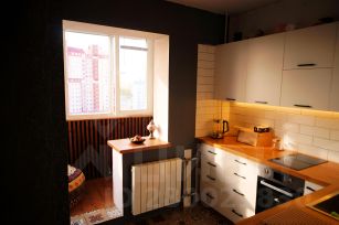 - Выполнена перепланировка - соединена кухня и балкон, балкон утеплен, проведено электричество, сделана дизайнерская подсветка;