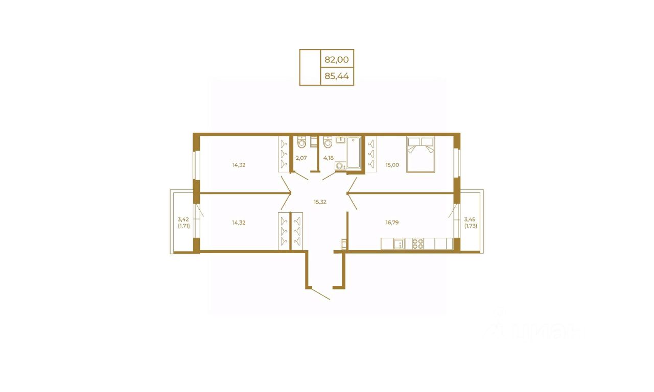 Продаётся 3-комнатная квартира в строящемся доме (Корпус 7.6), срок сдачи: IV-кв. 2025, общей площадью 85.44 кв.м., на 4 этаже. ЖК расположен в Сертолово, мкр.Черная речка. 25 минут на машине до метро Парнас, либо 30 минут до метро Пр.Просвещения.
