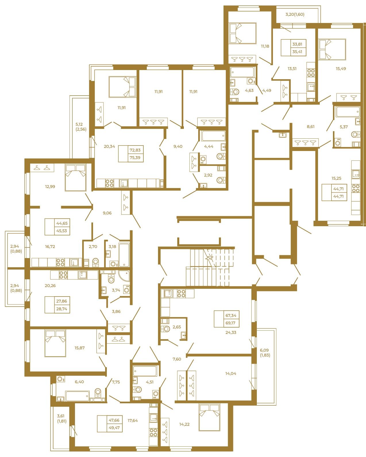 9. Горизонтальная система теплоснабжения (трубы отопления в квартире проходят в стяжке пола и подводятся к радиаторам), а также "безстояковая" система водоснабжения в квартирах (водорозетки устанавливаются на стене, граничащей с общим коридором, под потолком)