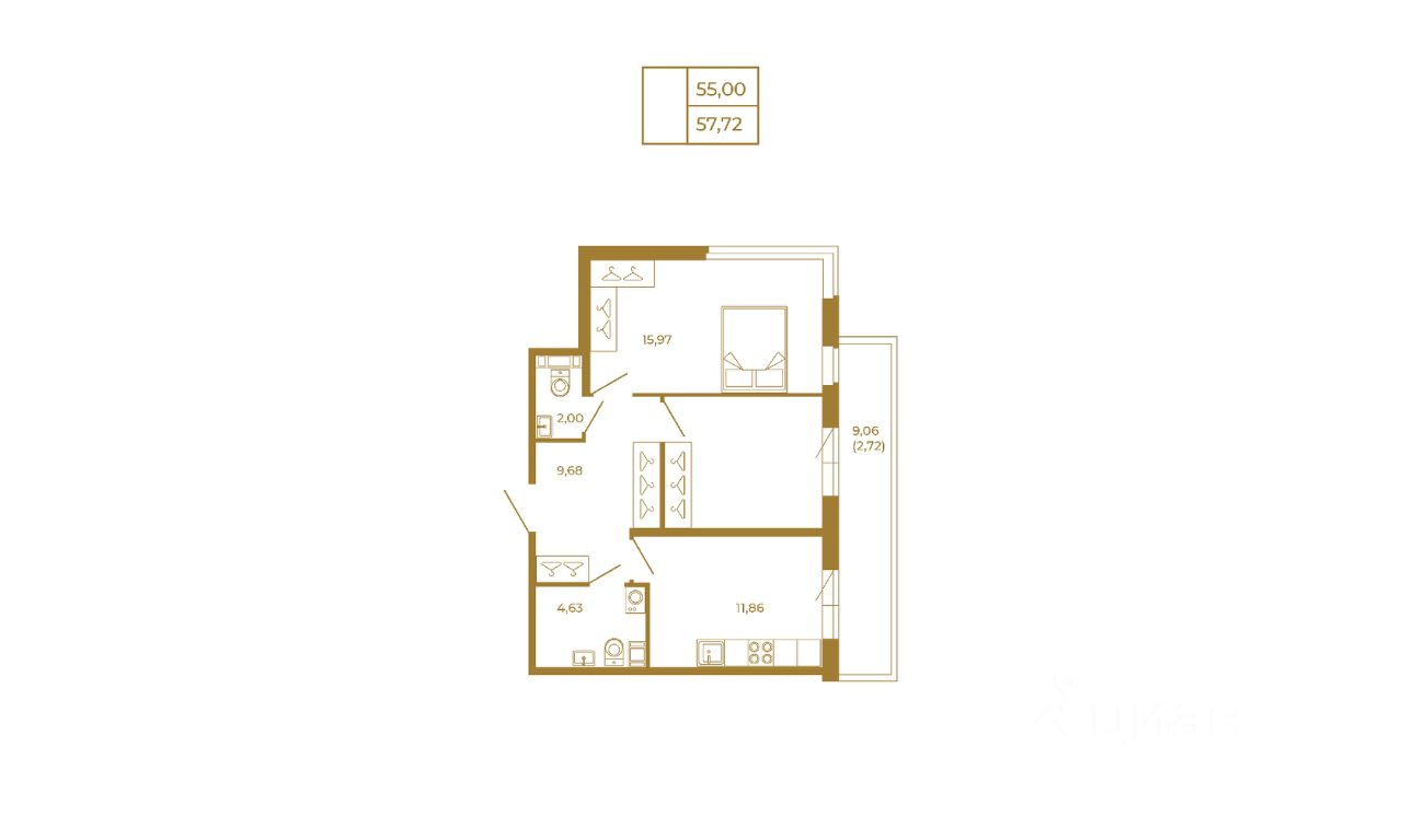 Продаётся 2-комнатная квартира в строящемся доме (Корпус 7.8), срок сдачи: IV-кв. 2025, общей площадью 57.72 кв.м., на 3 этаже. ЖК расположен в Сертолово, мкр.Черная речка. 25 минут на машине до метро Парнас, либо 30 минут до метро Пр.Просвещения.