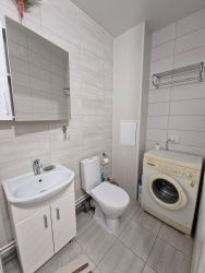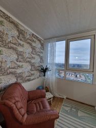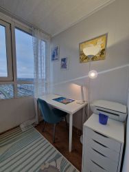 Студия редкой планировки, с большой лоджией, которая оборудована под кабинет и место отдыха. Остекление заменено на теплое (двойные стекла), есть отопление в виде теплого пола.