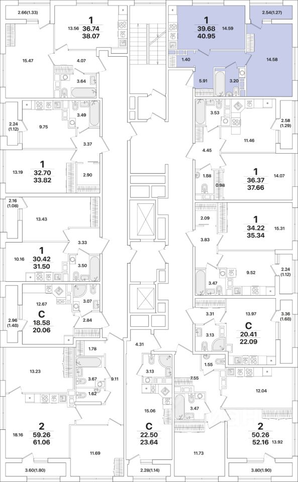 40,7 м²