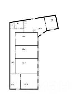 Отдельные комнаты: 15.9 кв.м. + 23.1 кв.м. + 19.6 кв.м. + 19.6 кв.м. + 9.3 кв.м.