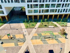 Дворы оборудованы детскими площадками, есть парковка для велосипедов, подземная парковка для автомобилей. Закрытая, охраняемая территория. Рядом с домом есть все необходимое для проживания - детские сады, школа, супермаркеты. Хорошая транспортная доступность. Один взрослый собственник. Квартира полностью выплачена, без обременений и ипотек.