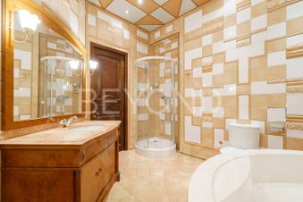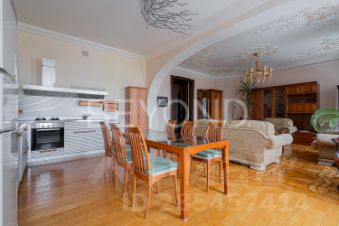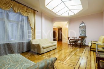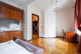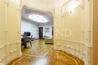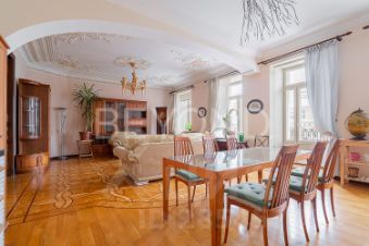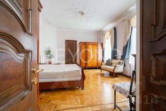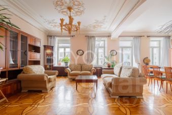 Квартира общей площадью 194 кв. м выполнена в классическом стиле и выходит окнами непосредственно на набережную с фасадным видовым балконом, а также в тихий двор. Гостиный зал, столовая, три спальни, гостевая комната, две ванных комнаты, гостевой санузел. Высокий видовой этаж, завораживающие виды на исторические доминанты царского Петербурга. Парадный вход с набережной, круглосуточная консьерж-служба.