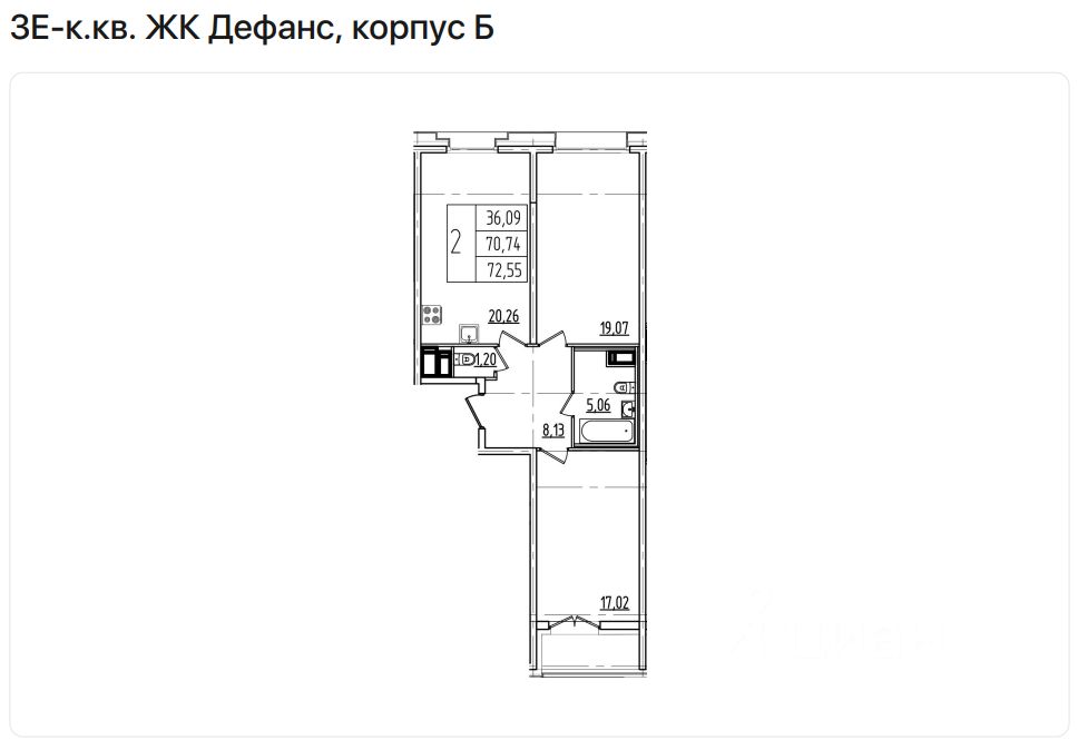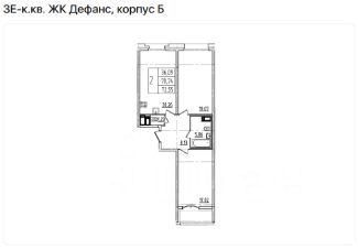 Продаётся 2-комнатная квартира в ЖК Дефанс, общей площадью 72.55 кв.м., на 7 этаже.