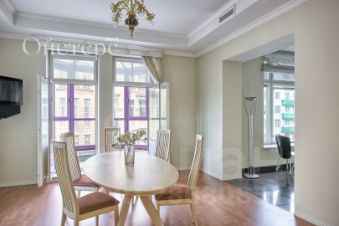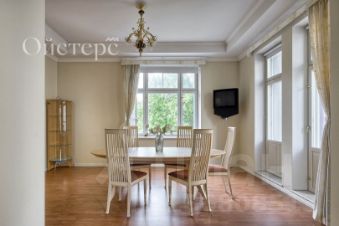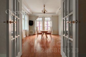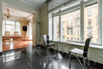 Квартира трехстронняя, просторная. Огромная полукруглая гостиная 67,5 м2 с высокими окнами выходит на сквер, окна одной из спален (21.3м2) со своей ванной комнатой (19,6 м2) выходят в просторный двор, окна второй спальни 9 (24.9 м2), кухни (17.4 м2) и столовой (21.9 м2) с застекленным балконом выходят на проспект. Действующий камин в гостиной. В квартире выполнен дизайнерский ремонт с качественными дорогими материалами. Абсолютно новый ремонт премиум класса и техника от ведущих производителей. Закрытый двор, круглосуточная охрана. Квартиру можно посмотреть в любое удобное для Вас время!