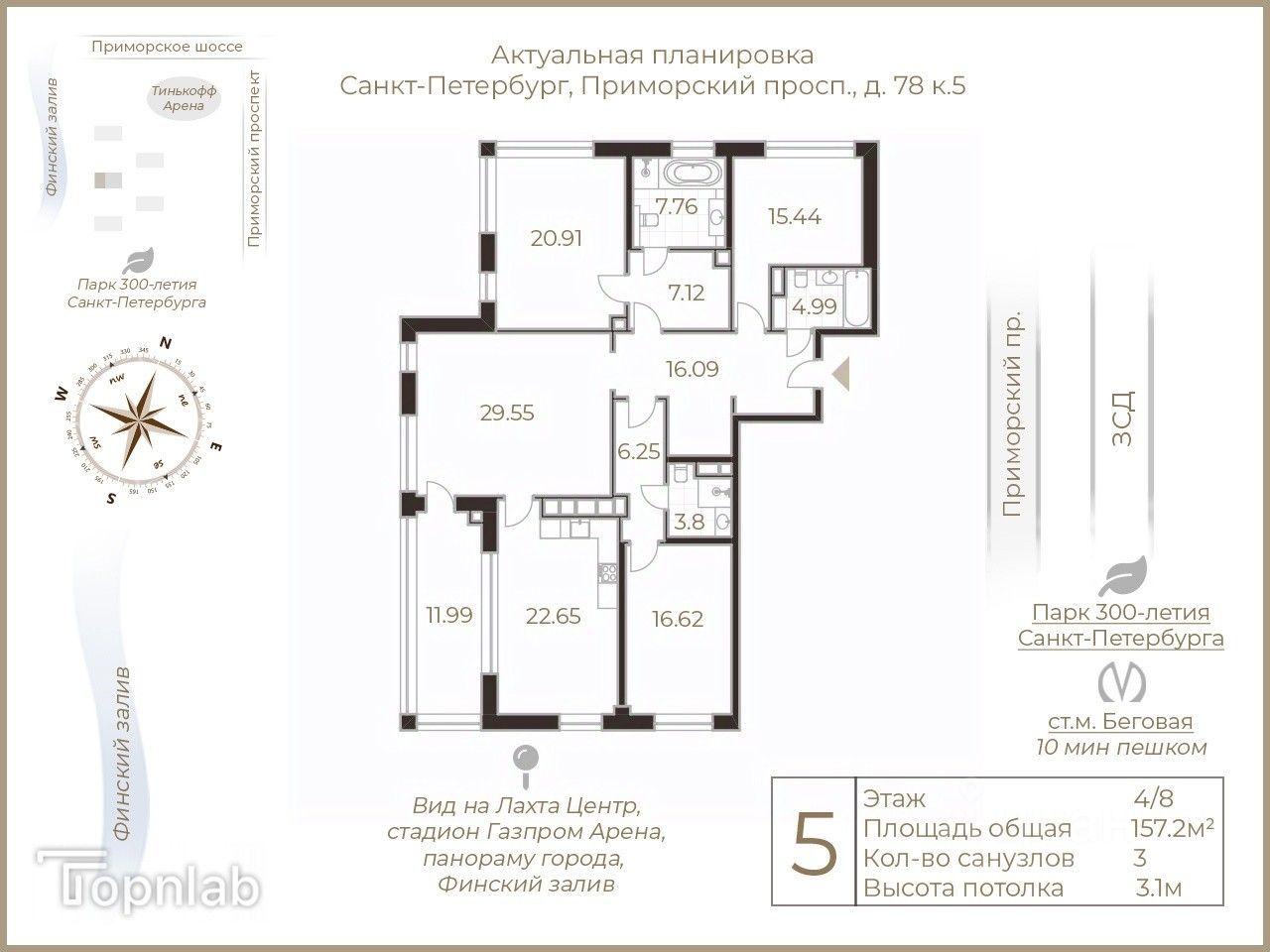 Арт. 3361260 Предлагаю Вашему вниманию видовые апартаменты ЖК "Лахта Плаза" расположенные в современной части Санкт-Петербурга, по адресу Приморский проспект ,78.