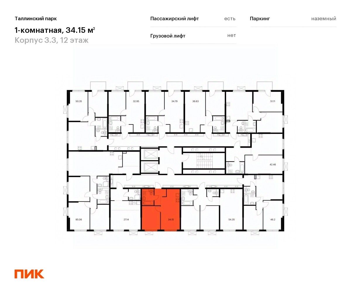 Продаётся 1-комн. квартира площадью 33,7 кв.м на 12 этаже 12 этажного дома (Корпус 3.3, Секция 1) проекта ПИК Таллинский парк. Светлый просторный подъезд на уровне земли, функциональная планировка, большие окна, предчистовая отделка.