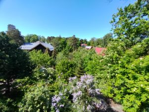 Квартира солнечная, светлая. Окна выходят на две стороны. Одна на закрытый двор, где солнце бывает утром. Другая с балконом, на зеленый двор с видом как на даче и обеденным солнцем. Света много, что не маловажно в Петербурге! Потолки, так как это мансарда, варьируются от 2,9 до 3,1 метров. Установленны звукоизоляционные стеклопакеты. Звуков от машин неслышно. Две ванных комнаты, в обеих установлены теплые полы. Правильная форма комнат и отсутствие несущих стен позволяют сделать полную перепланировку.