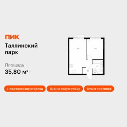 Продаётся 1-комн. квартира площадью 35,8 кв.м на 11 этаже 12 этажного дома (Корпус 3.3, Секция 1) проекта ПИК Таллинский парк. Светлый просторный подъезд на уровне земли, функциональная планировка, большие окна, предчистовая отделка.