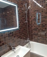 В ремонте использованы премиальные материалы (испанская плитка, австрийский ламинат ,фирменная входная дверь с зеркалом во всю дверь,ванная AM PM , раковина с тумбой AM PM , унитаз AM PM,смесители Grohe, мебель IKEA.