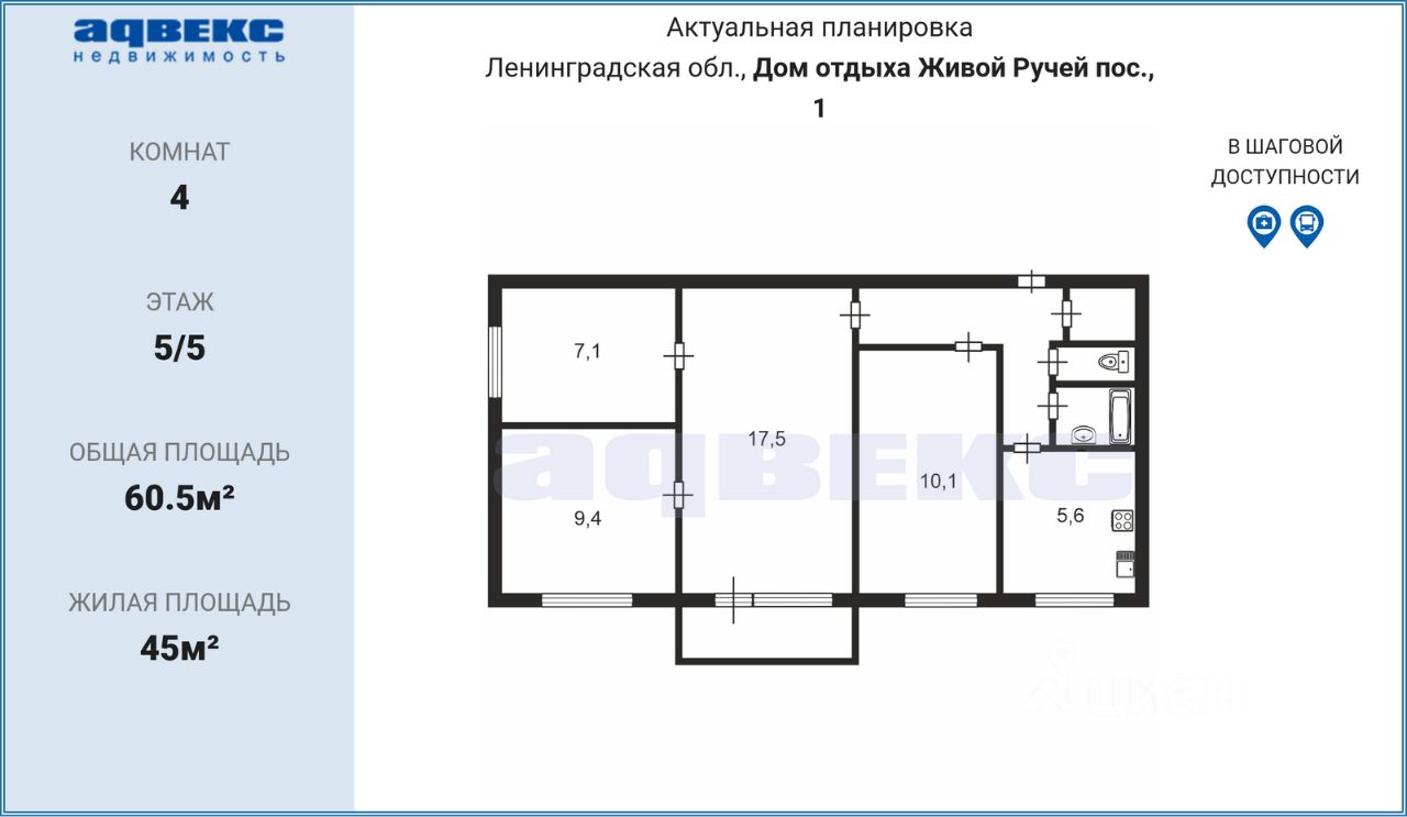 60,5 м²