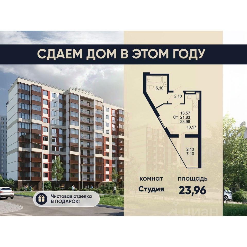 Сдаем дом в этом году! Чистовая отделка в подарок! ЖК "Рубеж" это современный жилой комплекс, расположенный в живописном поселке им. Свердлова Всеволожского района Ленинградской области. Комплекс состоит из двух секций, предлагая своим жильцам комфортные квартиры различной площади и планировки, развитую инфраструктуру и близость к природе. На территории комплекса расположен собственный физкультурно-оздоровительный комплекс с бассейном, а первые этажи отведены под коммерческие помещения. Квартиры: Все квартиры сдаются с чистовой отделкой, что значительно упрощает заселение. А Просторные лоджии площадью до 7 м² дают дополнительное пространство, которое можно использовать как место для отдыха, зимний сад или рабочий кабинет. Транспортная доступность: 15 минут на автомобиле до КАД. Ближайшая станция метро находится в 20 минутах езды на транспорте. Рядом с жилым комплексом находится остановка общественного транспорта, с которой регулярно отправляются автобусы в сторону Санкт-Петербурга. Инфраструктура и окружение: На территории комплекса расположен собственный физкультурно-оздоровительный комплекс с бассейном и детская площадка. На первых этажах разместятся коммерческие помещения — кафе, парикмахерские, магазины, — чтобы все необходимые услуги были в шаговой доступности. В пешей доступности от ЖК "Рубеж" находятся: Детский сад (3 минуты пешком) и школа (10 минут пешком). Невский лесопарк и Усадьба Богословка (900 метров) Набережная Невы (6 минут пешком). Двор оборудован детской площадкой с безопасным покрытием, уютными зонами отдыха и прогулочными дорожками. Ключевые преимущества ЖК "Рубеж": Гармония городской жизни и природного спокойствия. Собственный физкультурно-оздоровительный комплекс с бассейном. Чистовая отделка во всех квартирах. Просторные лоджии до 7 м². Развитая инфраструктура района. Благоустроенная территория с детскими и спортивными площадками, зонами отдыха. Близость к природе: Невский лесопарк, набережная Невы. Доступные цены. Сроки сдачи: 4 квартал 2025