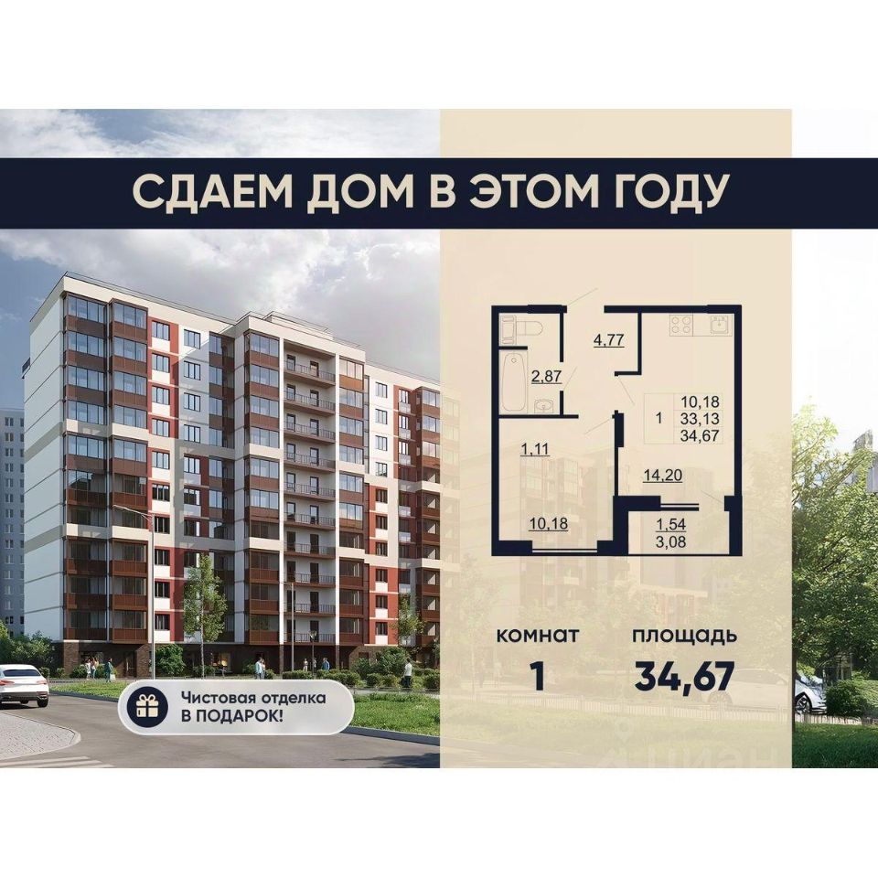 Сдаем дом в этом году! Чистовая отделка в подарок! ЖК "Рубеж" это современный жилой комплекс, расположенный в живописном поселке им. Свердлова Всеволожского района Ленинградской области. Комплекс состоит из двух секций, предлагая своим жильцам комфортные квартиры различной площади и планировки, развитую инфраструктуру и близость к природе. На территории комплекса расположен собственный физкультурно-оздоровительный комплекс с бассейном, а первые этажи отведены под коммерческие помещения. Квартиры: Все квартиры сдаются с чистовой отделкой, что значительно упрощает заселение. А Просторные лоджии площадью до 7 м² дают дополнительное пространство, которое можно использовать как место для отдыха, зимний сад или рабочий кабинет. Транспортная доступность: 15 минут на автомобиле до КАД. Ближайшая станция метро находится в 20 минутах езды на транспорте. Рядом с жилым комплексом находится остановка общественного транспорта, с которой регулярно отправляются автобусы в сторону Санкт-Петербурга. Инфраструктура и окружение: На территории комплекса расположен собственный физкультурно-оздоровительный комплекс с бассейном и детская площадка. На первых этажах разместятся коммерческие помещения — кафе, парикмахерские, магазины, — чтобы все необходимые услуги были в шаговой доступности. В пешей доступности от ЖК "Рубеж" находятся: Детский сад (3 минуты пешком) и школа (10 минут пешком). Невский лесопарк и Усадьба Богословка (900 метров) Набережная Невы (6 минут пешком). Двор оборудован детской площадкой с безопасным покрытием, уютными зонами отдыха и прогулочными дорожками. Ключевые преимущества ЖК "Рубеж": Гармония городской жизни и природного спокойствия. Собственный физкультурно-оздоровительный комплекс с бассейном. Чистовая отделка во всех квартирах. Просторные лоджии до 7 м². Развитая инфраструктура района. Благоустроенная территория с детскими и спортивными площадками, зонами отдыха. Близость к природе: Невский лесопарк, набережная Невы. Доступные цены. Сроки сдачи: 4 квартал 2025