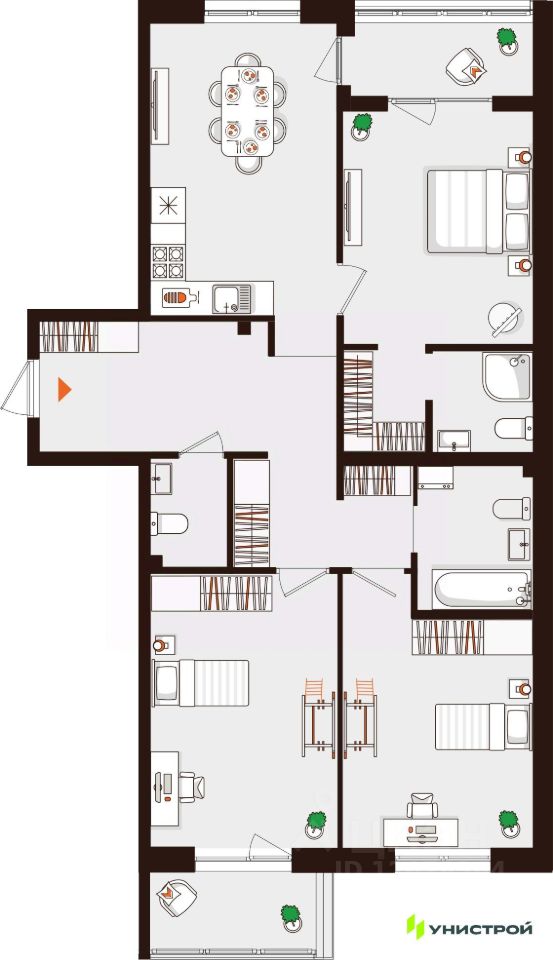 Унистрой—федеральная девелоперская компания «Унистрой», реализующая проекты в Казани, республиках Татарстан и Башкортостан, Ленинградской и Самарской областях. Компания работает на рынке с 1996 года и специализируется на развитии жилой и коммерческой недв...