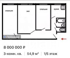 агентов прошу не звонить, не тратьте моё и своё время. 2 взрослых собственника. Чистота сделки гарантируется. вопрос цены обсуждаю только с реальным покупателем. с продажей не тороплюсь. Для тех кому нужна реально гарантированная чистая сделка меня поймут, дешёвая сделка не всегда удачное вложение. Перспективная квартира для проживания семей с детьми. Метраж всего 54,9. Комнаты раздельные. Жилое: 38,6.(9,3+15,8+13,5). Кухня 5,4. Места общего пользования 10,9 (коридор, ванная и туалет). Квартира имеет удобное расположение, возможно перепланировка в Евро - трёшку. Кухня-гостиная будет около 20,3 метров, детская комната около 13,5 метров. Спальня для взрослых 15,8 метров. Плюс небольшой холл коридор. Ванная и туалет раздельные, но при желании их можно объединить, так как расположены рядом. Всё покажу есть проект.