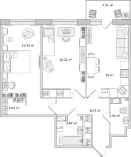 Продаётся двухкомнатная квартира в жилом комплексе ЦДС "Чёрная Речка", Корпус 8Номер квартиры — 210.