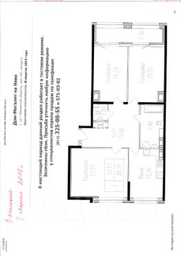 Общая площадь 89,3 кв.м, без учета лоджии;