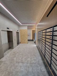 Кирпично-Монолитный дом. У входов в парадные находятся велопарковки, а на первых этажах предусмотрены колясочные.