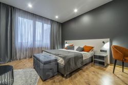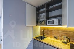 Апартаменты находятся в отличном состоянии, расположены на 4 этаже 9-ти этажного дома. Общая площадь апартаментов 40,1 кв.м, жилая 31,5 кв.м. Совмещенный санузел. Встроенная душевая кабина, стиральная машина, удобное зеркало с подсветкой, электрический полотенцесушитель. В апартаментах имеется кондиционер, что позволяет поддерживать комфортный для себя климат в помещении. Окна выходят на закрытый двор. Благоустроенная территория.