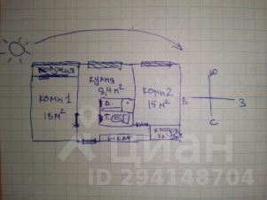 Просторная 2кк (15 +17 кв м) типа "бабочка" или "штаны", где комнаты расположены в разных концах, что очень удобно для сохранения личного пространства.
