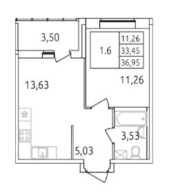 Общая площадь 33,45 кв.м.