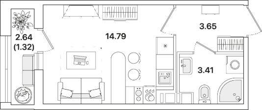 Квартира находится в 12 этажном доме, в Академик Жилой дом 3 на 5 этаже. Общая площадь квартиры 23,17 кв.м.