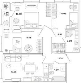 Продаётся 3к.кв. в ЖК Академик от застройщика Холдинг "РСТИ" (Росстройинвест).