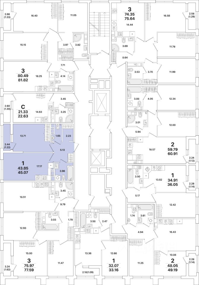 Квартира находится в 12 этажном доме, в Академик Жилой дом 2 на 12 этаже. Общая площадь квартиры 45,07 кв.м.