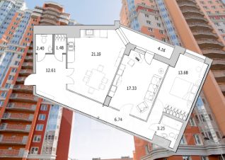 Две спальные комнаты: 17.3 кв.м. и 13.7 кв.м. с местом под гардероб каждая;