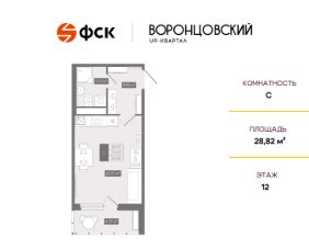 Цена со скидкой до 30% в прямой продаже от застройщика — только в этом месяце. Беспроцентная рассрочка. Студия в ЖК UP-квартал "Воронцовский" на 12-м этаже. Общая площадь 28,82. Чистовая отделка.