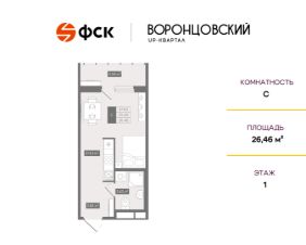 Цена со скидкой до 30% в прямой продаже от застройщика — только в этом месяце. Беспроцентная рассрочка. Студия в ЖК UP-квартал "Воронцовский" на 1-м этаже. Общая площадь 26,46. Чистовая отделка.