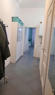 Из просторной гардеробной выделена зона кухни. Новые счётчики на воду.