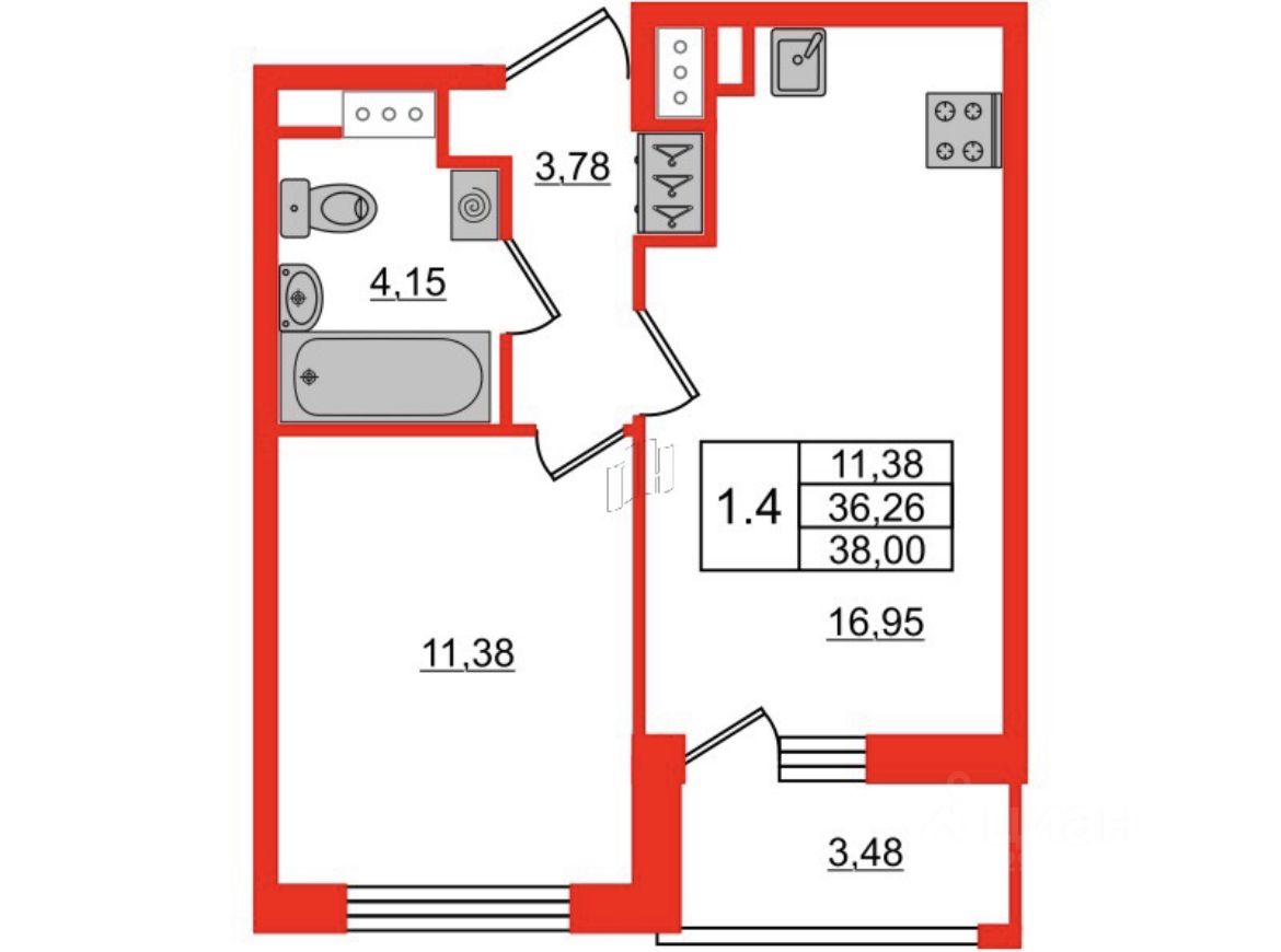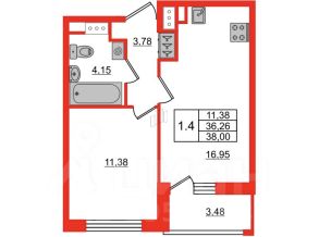 Предлагается к продаже однокомнатная квартира с шикарной планировкой: большая кухня-столовая 16,95м с выходом на лоджию, просторный санузел 4,15м, уютная комната правильной формы 11,38 и компактный коридор с функциональными нишами под шкафы. Окна в сторону Невы.